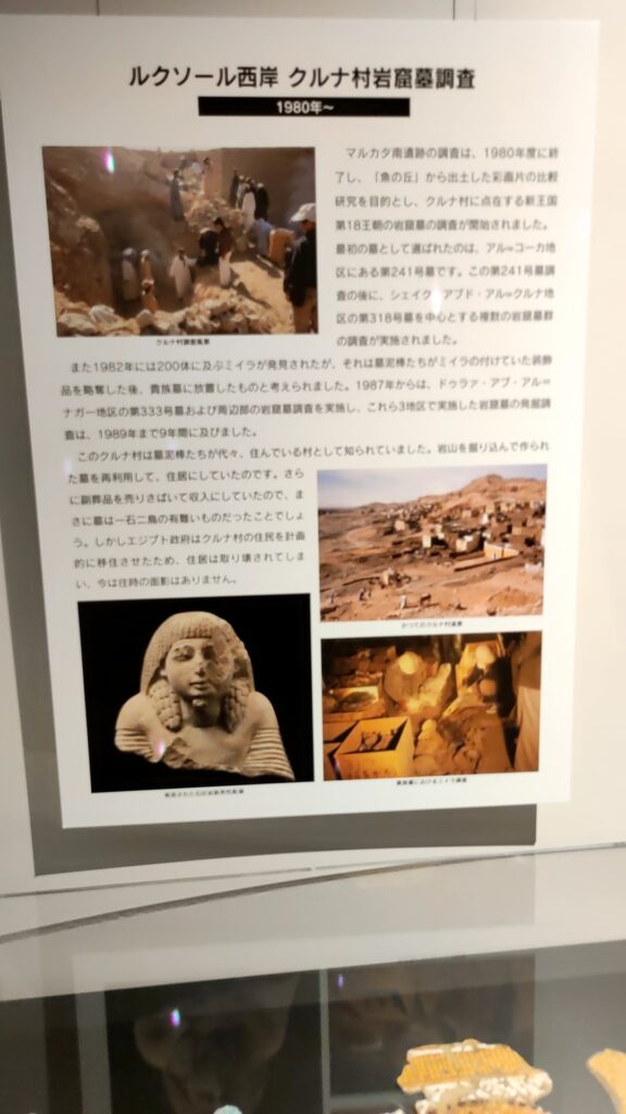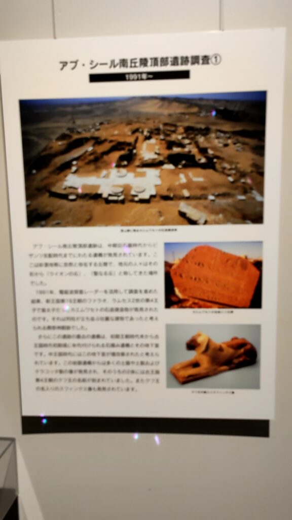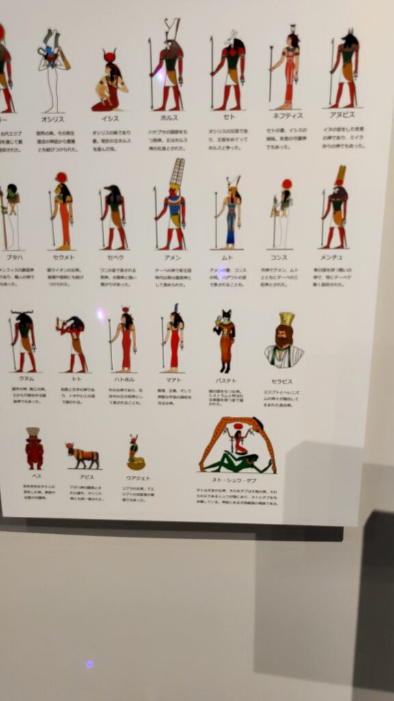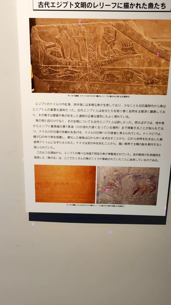 肝心のエジプト文明展は水族館の一部でパネル展のようなもので、発掘された遺物もレプリカが多くてガッカリしました。パネルを表示します。