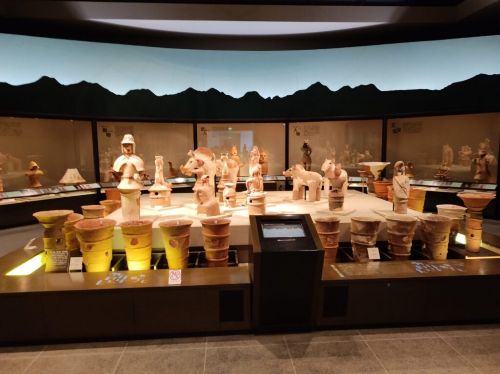 群馬県は高崎市八幡にある八幡古墳群の中央に観音塚考古資料館があります。八幡古墳群は古墳三基からなり、平塚古墳が最も古く、八幡二子塚古墳、観音塚古墳の順に新しくなります。資料によると「観音塚考古資料館は、国指定重要文化財「上野国八幡観音塚古墳出土品」の保存と公開を目的として、昭和63年11月に開館しました。これらの出土品は昭和20年3月、防空壕を掘っていた地元の人々によって偶然発見された石室内から発見されたものです。30種300点にのぼる出土品は学術的にも価値が高く、古墳時代後期の高度な技術、国際色豊かな先進性、繊細な美意識などを、現代の私たちに伝えてくれます。」とのことです。