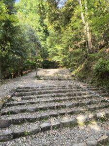 一の鳥居を過ぎて山道の階段を歩きますが、本殿迄300メートル延々と階段が続きます。